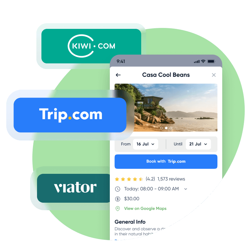 We've partnered with providers like Trip.com, Viator & Kiwi to offer you a wide range of accommodations, flights, and experiences all conveniently accessible through our app.